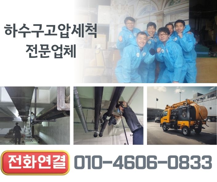 즉시 연락 주시면 친절한 상담과 예약 일정을 안내해 드리겠습니다. 인천 지역에서 신뢰할 수 있는 고압 세척 서비스로 막힌 하수구 문제를 완벽하게 해결하세요!하수구 막힘 해결을 위한 인천 고압 세척 서비스